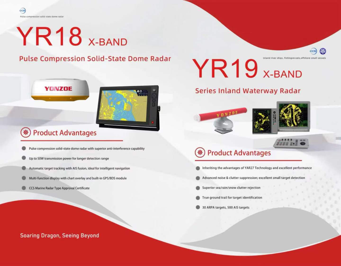• 郑和系列(YAR27)IMO 船用 ARPA 雷达:具有S、X波段型号,符合最新 IMO/IEC 国际规范,获 CCS、欧盟 MED B+D 认证,具备超强海杂波抑制与 ARPA 避碰能力,适配商船、公务船等大型船舶,堪称远洋航行的 “安全之眼”。